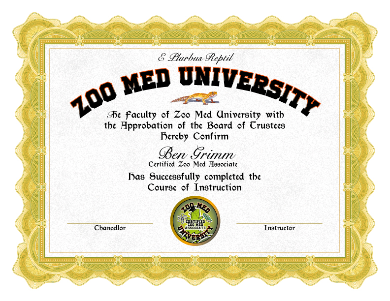 Además de brindarle una base de información para brindar el mejor cuidado de reptiles, vender productos para el cuidado de reptiles y brindarle consejos informados y precisos, nos gustaría agradecerle su tiempo y la finalización de los cursos de capacitación de la Universida Zoo Med.